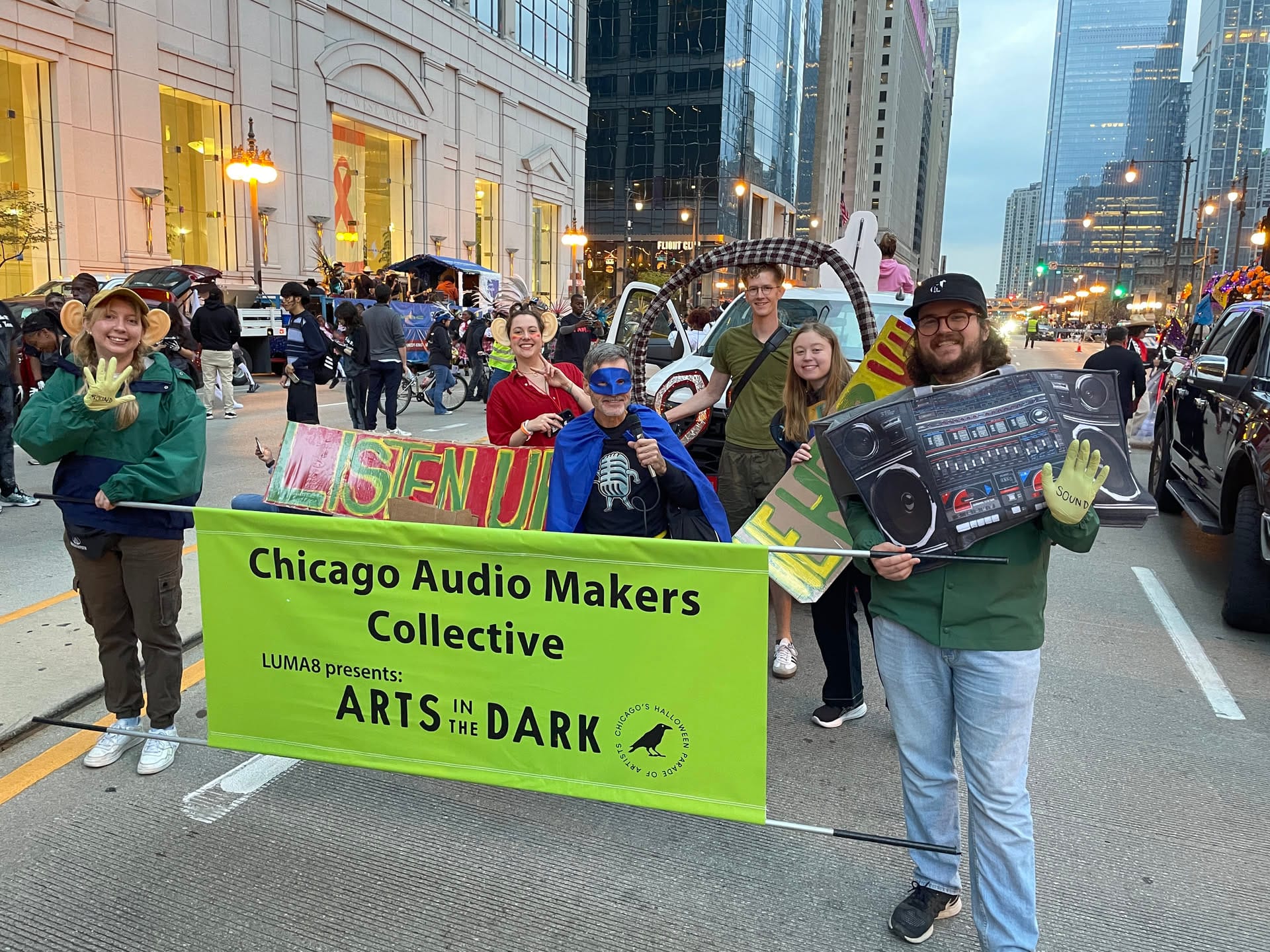 We had such a blast with our small crew of CAC-ers at the Arts in The Dark Parade! Our group was small, but mighty — and we got the crowd up to a peak of ~130 decibels!