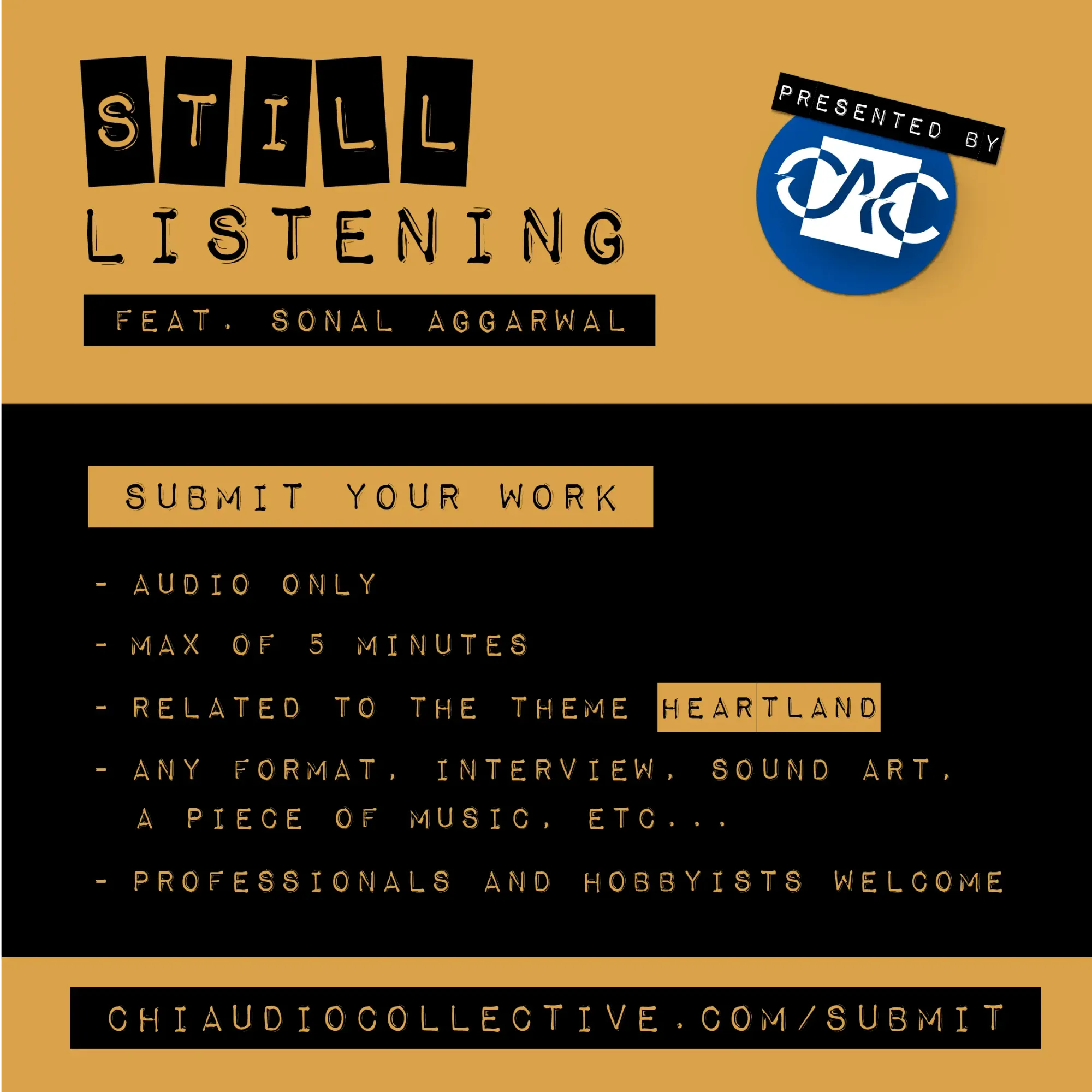 Chicago Audiomakers Collective presents Still Listening, an evening of curated audio hosted by Sonal Aggarwal.